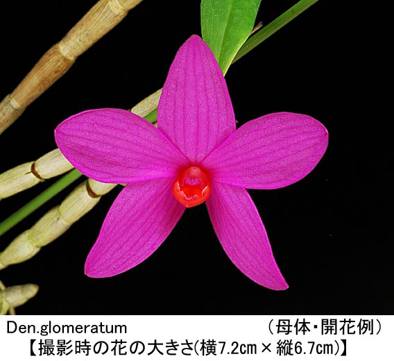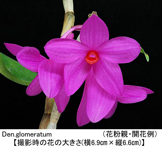 落葉したバルブ頂部付近に、花径5~6cmのかなり大きな花を、1花茎に3~5輪付けます。このタイプとしては、もっとも大きな花を付け、見応えがあります。